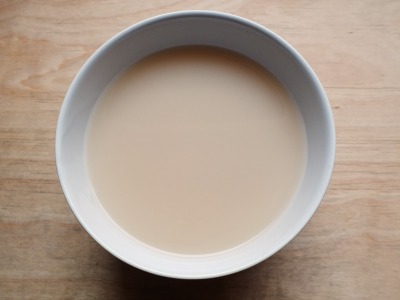 Disolver la levadura fresca en 100 ml de leche tibia tomada del total.