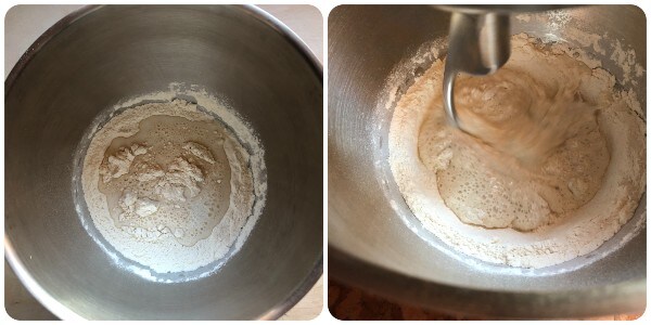 Agregar la leche y comenzar a amasar con el gancho de amasado.