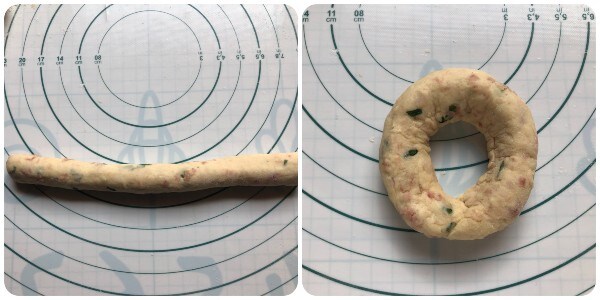 Con cada trozo, formar un rollito de 20 cm de largo y cerrar los extremos formando una pequeña rosquilla. Proceder de la misma forma hasta agotar toda la masa. Es una masa fácilmente manejable que te permitirá juntar incluso los varios recortes.