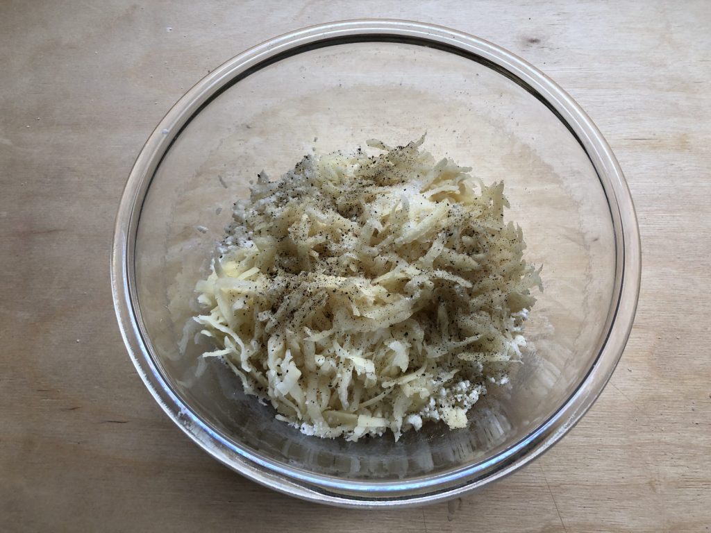 Finalmente, espolvorea los rösti con el queso rallado restante.