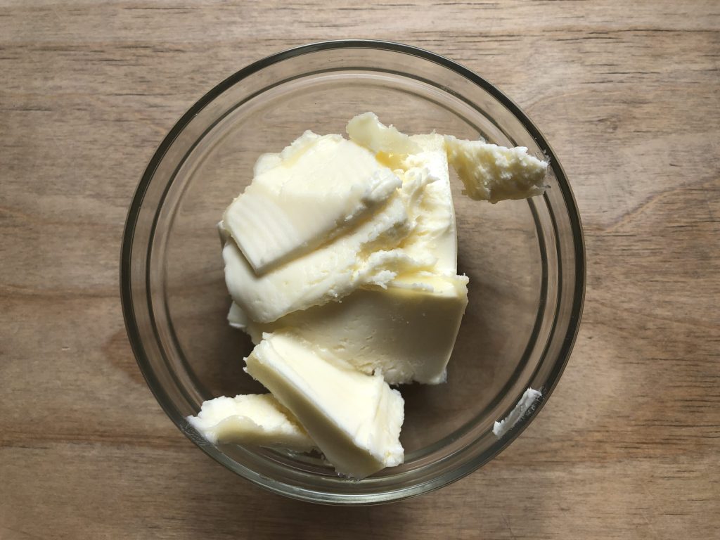 Sacar la mantequilla del frigorífico, cortarla en trozos y dejar que se ablande a temperatura ambiente. Debe estar solo blanda pero no derretida.