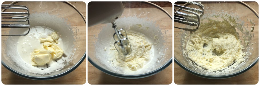 Añadir la mantequilla ya blanda y trabajar de nuevo con las batidoras.