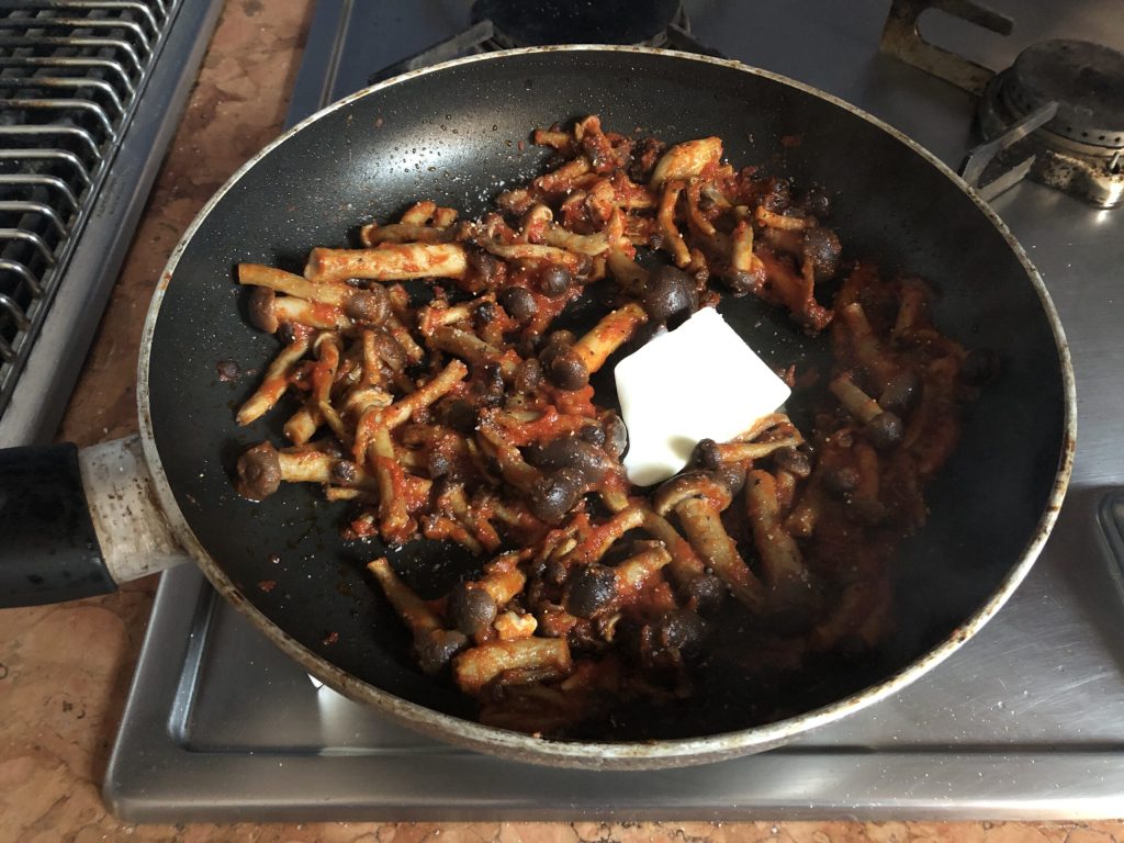 En este punto, salar y pimientar al gusto y luego añadir la mantequilla, que dará a las setas un brillo extra.