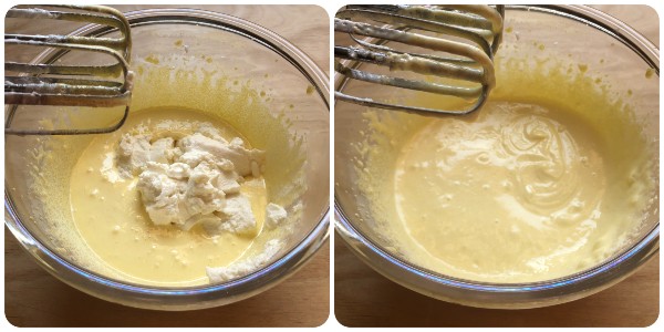 Luego añade la ricotta e incorpórala siempre con la batidora.