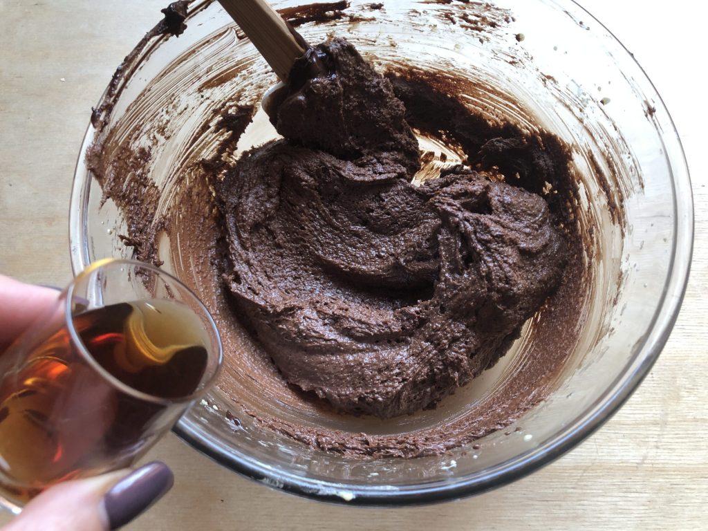 Incorpora el chocolate fundido ya templado y mezcla bien hasta que esté perfectamente integrado en la masa.