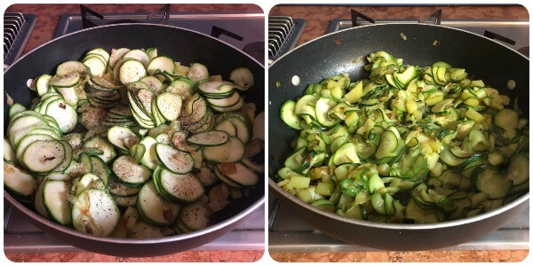 En este punto, añadir la ricotta y dar una primera mezcla. Luego agregar también el queso rallado y la scamorza en cubitos y mezclar bien todos los ingredientes. Ajustar la sal y la pimienta, si es necesario.