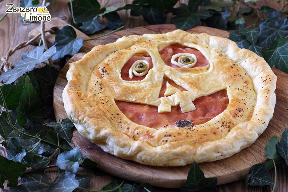 Cocinar la tarta salada de Halloween en horno estático precalentado a 180° durante 35 minutos. Sacarla y dejarla enfriar ligeramente antes de servir. ¡Disfruta tu Halloween! Paola