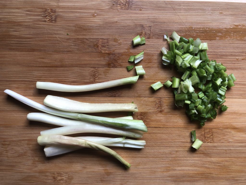 Luego, con las tijeras, cortar en anillos algunos tallos verdes.