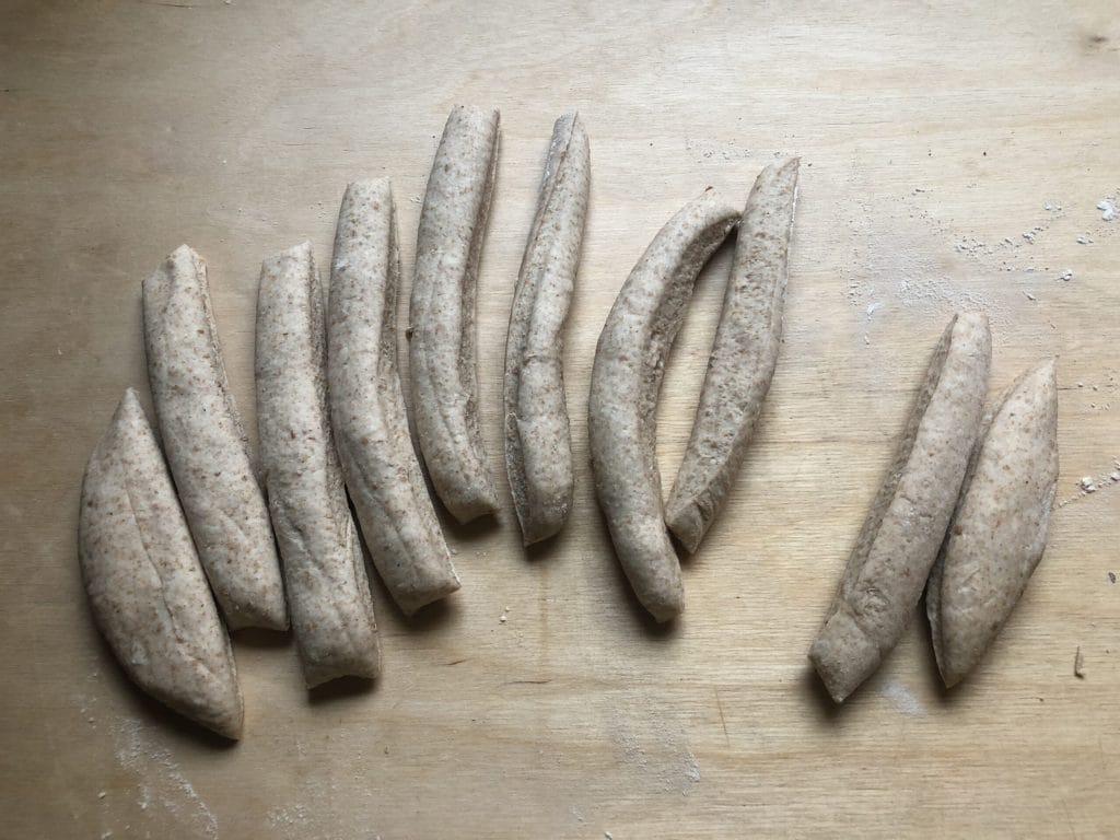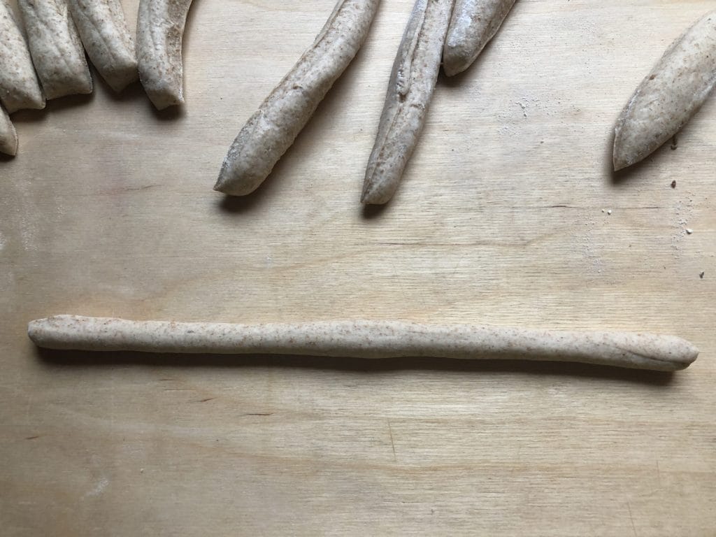 Colocar los torcetti dentro de una bandeja forrada con papel de horno, cubrirlos con un paño limpio y dejarlos levar por al menos otra hora.
