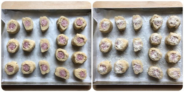 Procede de la misma manera con los otros dos rollos, luego transfiérelos al frigorífico durante media hora para que se endurezcan.