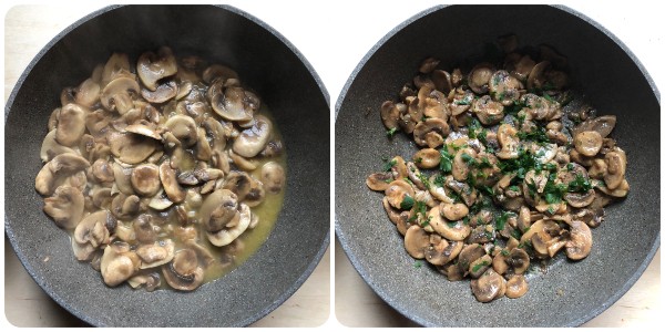 Continuad la cocción a fuego medio durante unos diez minutos, removiendo con frecuencia. Al terminar la cocción, toda el agua que hayan soltado los champiñones deberá haberse evaporado. Salpimentad al gusto y aromatizad los champiñones con perejil picado muy fino.