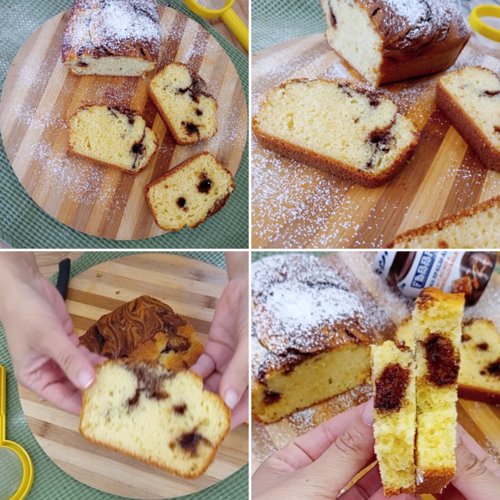 Verter la mezcla en un molde de bizcocho 23×10 enmantequillado y enharinado o revestido con papel de horno. Yo utilicé un molde de papel de horno.Decoré la superficie con crema para untar y con ayuda de una cucharita la mezclé bien con la masa.