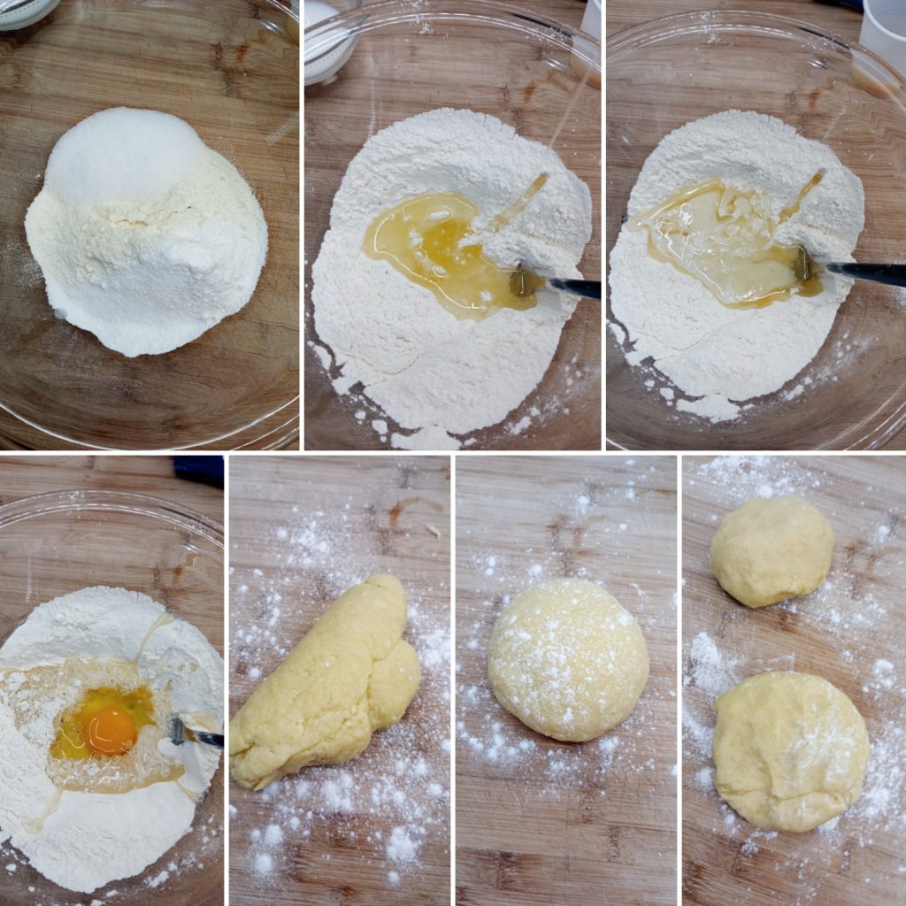 Volcar todo sobre una superficie ligeramente enharinada y trabajar la masa con las manos hasta obtener un panecillo bonito, suave y homogéneo (si es necesario, añadir más harina).