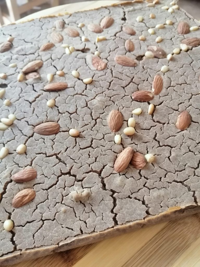 Hornea: Cocina en horno estático precalentado a 180°C durante unos 40 minutos.Si prefieres la versión tradicional, añade también algunas agujas de romero fresco esparcidas sobre la superficie y, si quieres, un chorrito de aceite.