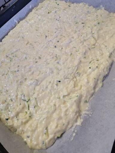 Vierte toda la masa cremosa de patatas y calabacines en el molde.