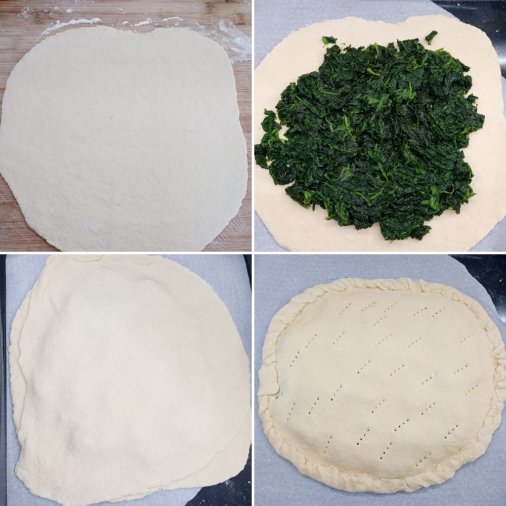 Para rellenar mi versión de hoy, he elegido los clásicos y siempre amados espinacas. Pero recordad: esta focaccia se presta a infinitas variantes! Ya la he probado y es excelente también con la explosiva combinación de salchicha y grelos o con un relleno más delicado de jamón y provola (sí, las he probado todas, os lo aseguro! 😉).