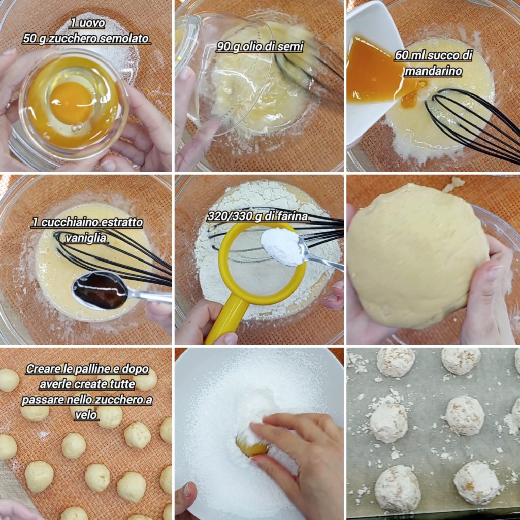 Es importante pasar las bolitas por el azúcar glas solo al final, después de que estén todas preparadas. De este modo, el azúcar no se absorberá inmediatamente y tendrás un efecto más bonito!