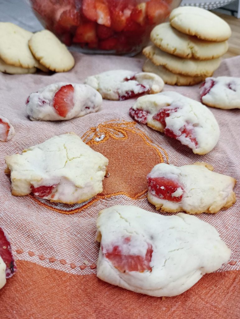 Os propongo estas galletas «rotas» de fresa sin gluten que se preparan en un abrir y cerrar de ojos. Solo será necesario dejar reposar la masa una hora en la nevera y luego romperla con las manos para crear las galletitas, sin rodillo y sin moldes. Muy fáciles y muy ricas. Estas galletas también son ideales para quienes sufren de intolerancias al gluten. Venid conmigo y empecemos a cocinar.