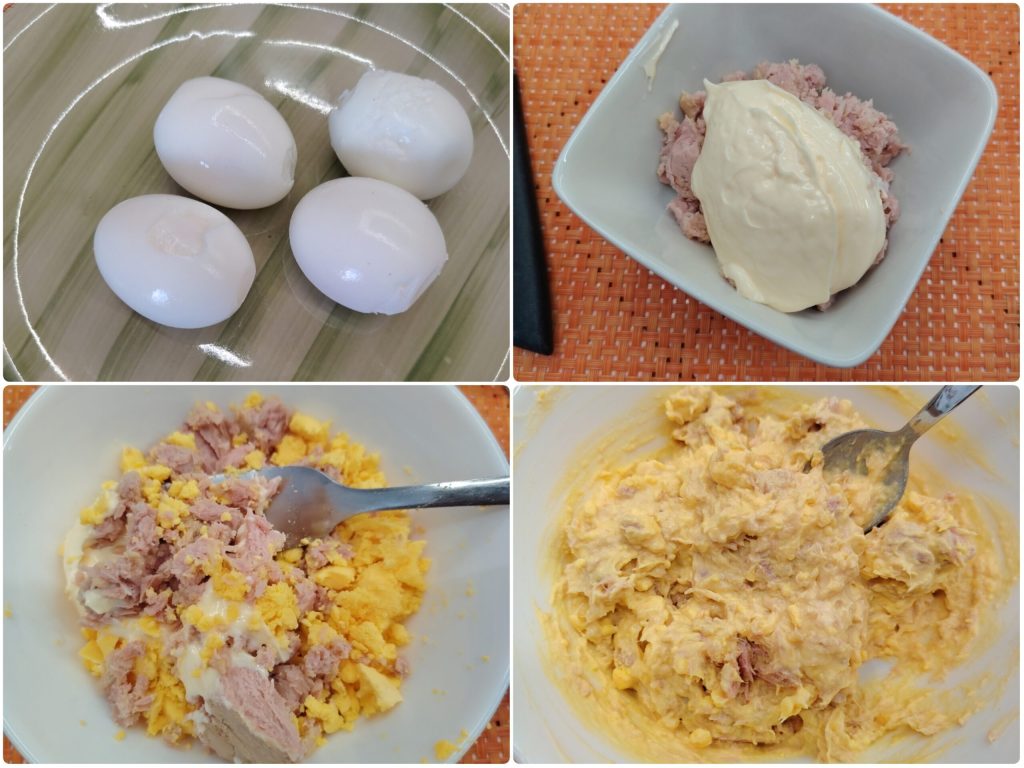 Sí, podéis preparar la crema de atún y mayonesa el día anterior y conservarla en la nevera, montando luego los huevos poco antes de servir.
