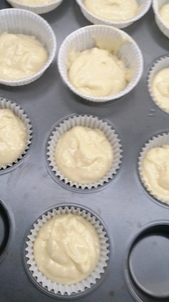 Colocar la masa en 12 moldes para muffin, llenándolos aproximadamente a dos tercios de su capacidad.
