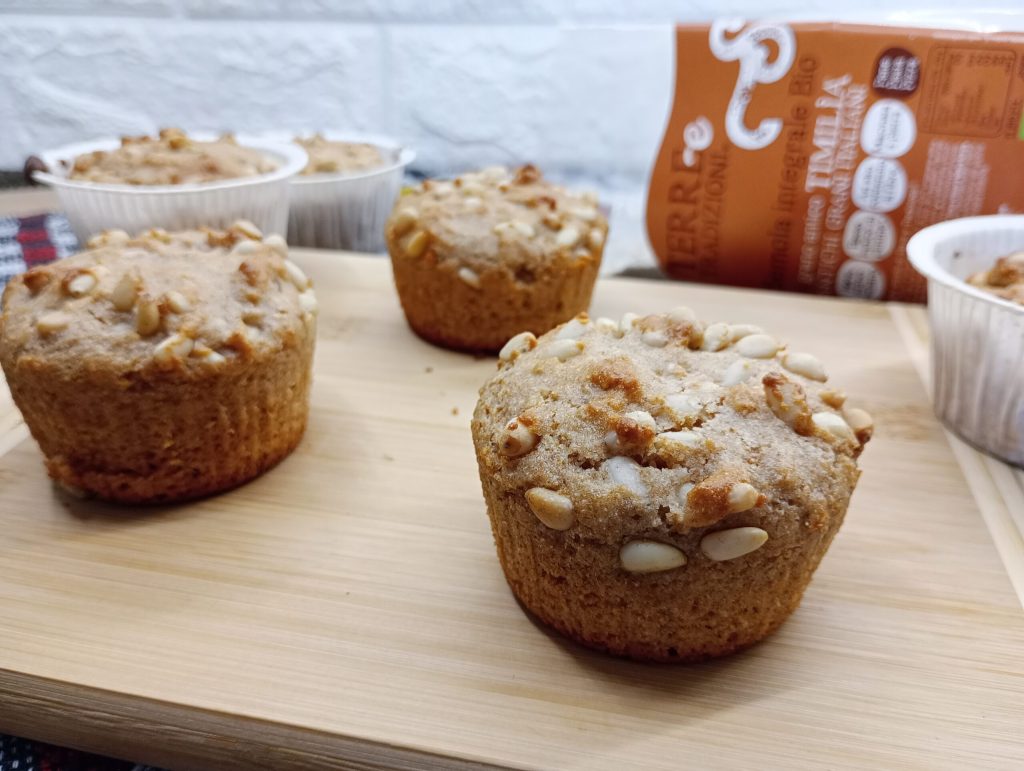 Estos muffins sin huevos son suavísimos. Se preparan con poquísimos ingredientes y el resultado es sorprendente. Yo he utilizado una harina de sémola integral bio, esta harina hace que estos muffins sean realmente especiales y con un sabor muy particular, te recomiendo probarla porque te sorprenderá. Si prefieres, puedes utilizar también harina 0 o 00; obviamente, cambiarán de sabor.