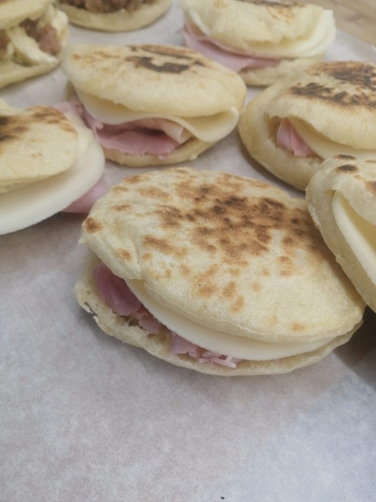 Estos pancitos blandos cocidos en sartén son un punto intermedio entre una tigella y el pan árabe. Tienen el sabor de la tigella, pero al cocinarse se inflan como el pan árabe. Son realmente fáciles de preparar, blandos y sabrosos. Buenos solos y aún más rellenos. Al cocinarse se convierten en pequeños globos. En mi casa siempre se acaban y nunca son suficientes.