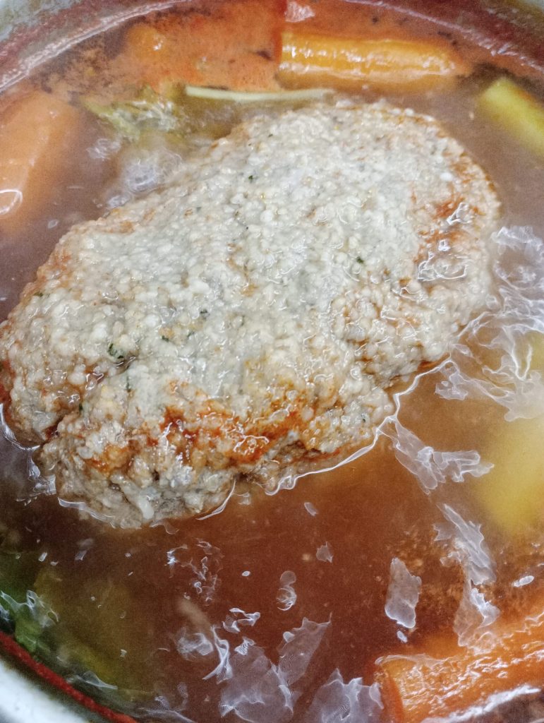 Coloca el rollo de carne en la olla, cubre y deja cocinar durante unos 35-40 minutos a fuego lento.