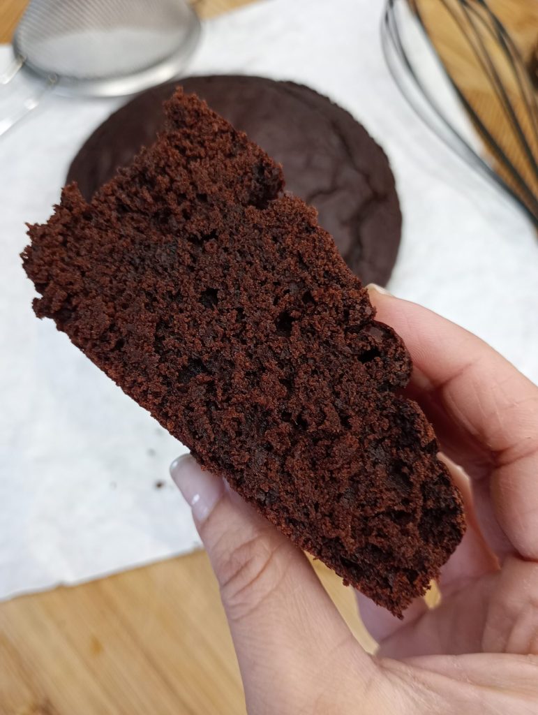 Es una tarta increíblemente esponjosa y deliciosa, que resulta muy suave y delicada al paladar. Si ya habéis apreciado la versión «blanca«, la clásica, os aseguro que esta variante al cacao os conquistará en el primer bocado. A pesar de la total ausencia de grasas animales, la masa mantiene una sorprendente humedad, que la hace realmente irresistible.