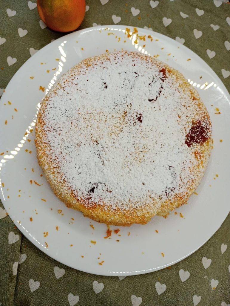 Para preparar esta tarta he utilizado zumo de naranjas recién recogidas de mi jardín, pero puedes usar tranquilamente zumo de naranja ya preparado: el resultado será igualmente delicioso.