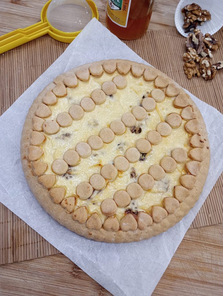La tarta de queso ricotta, miel y nueces es un dulce otoñal, perfecto para el desayuno para dar el impulso adecuado o para una merienda deliciosa. Una tarta muy sencilla de hacer, una base de masa quebrada con aceite aromatizado al limón que encierra una deliciosa crema de ricotta y miel. Ven conmigo que empezamos a divertirnos en la cocina.
