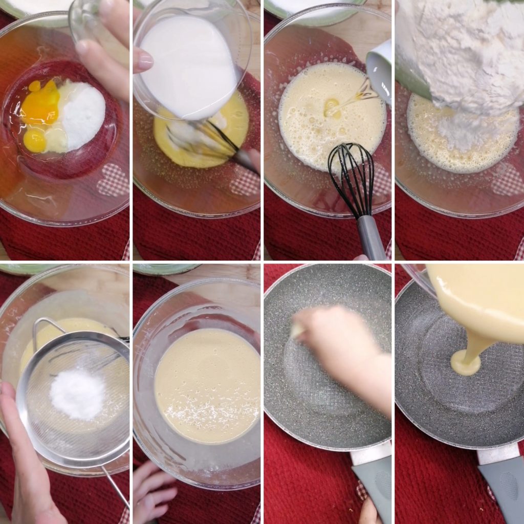 Pasos para la tarta esponjosa cocida en sartén