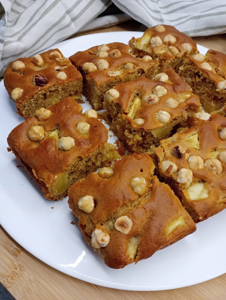 Esponjosa y húmeda, esta tarta integral es un himno a la sencillez que conquista. La dulzura de las manzanas se fusiona con la delicadeza del yogur, mientras que las avellanas crujientes añaden una nota irresistible. Perfecta para el desayuno o para una pausa golosa, te conquistará al primer bocado. Venid conmigo que empezamos a hacer travesuras en la cocina.