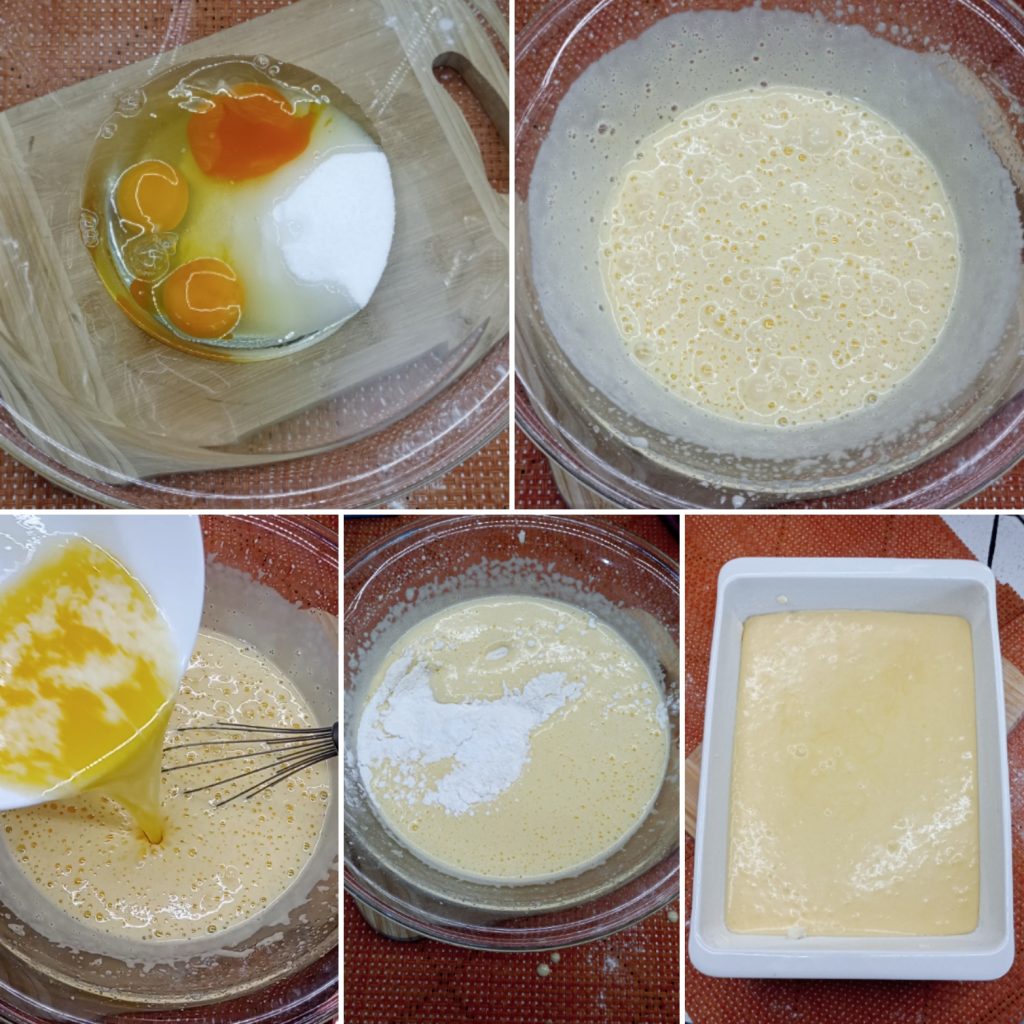 Precalienta el horno estático a 180°C. Engrasa y enharina un molde rectangular 30×20 cm.
