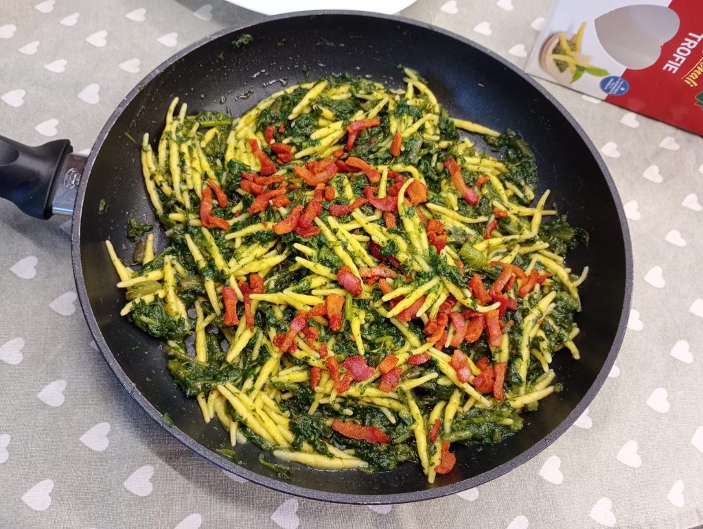 Pocos y sencillos ingredientes para un plato muy sabroso. Las trofie con grelos y guanciale son una explosión de sabor. Tengo una verdadera pasión por los grelos, me gustan en los crostini, en la pizza y sobre todo para condimentar la pasta, luego combinado con el guanciale y el pecorino romano se vuelve realmente irresistible.