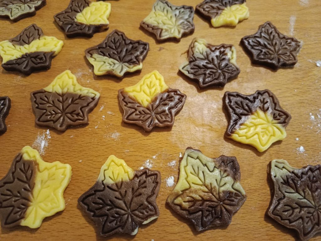 Son unas galletas crujientes, perfumadas y coloridas en tres tonos que recuerdan las hojas que caen de los árboles, llevando un toque de magia a la mesa.