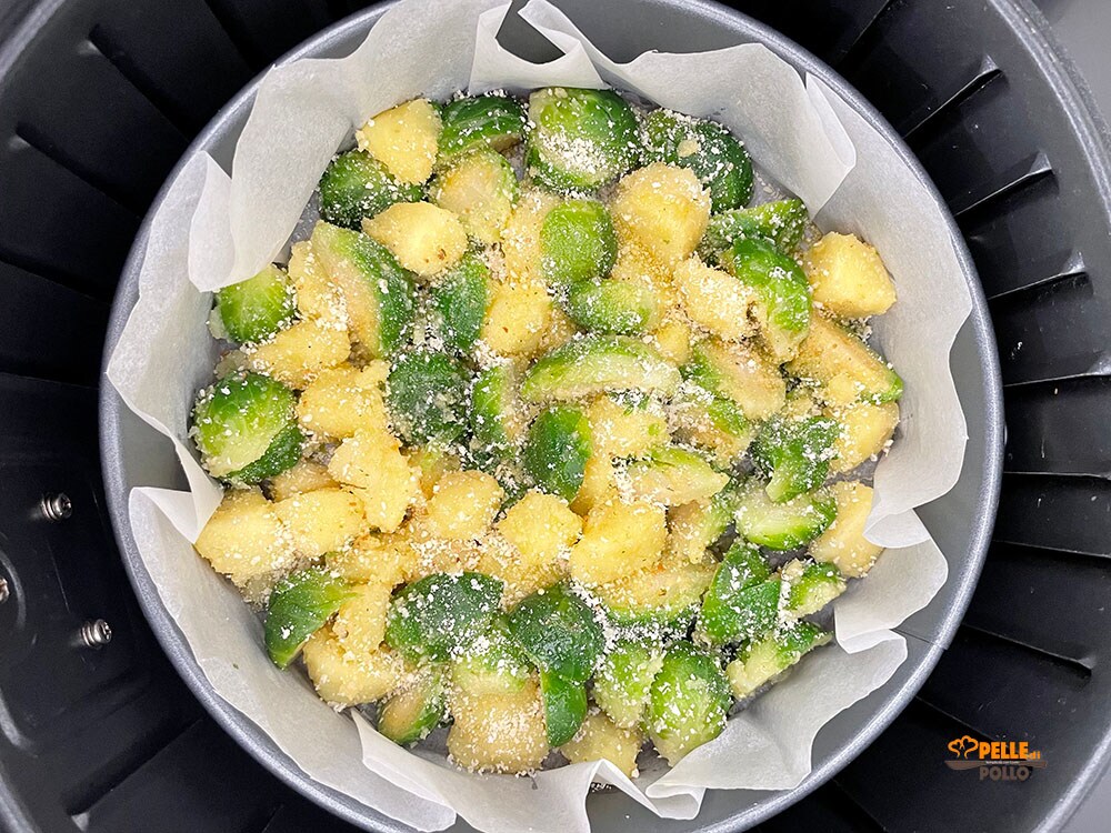 Un acompañamiento muy sencillo pero realmente sabroso, que se puede combinar con segundos platos de carne, pescado o vegetarianos. Coles de Bruselas y patatas gratinadas, para cocinar en el horno o en freidora de aire, tras una breve cocción en agua… se preparan en pocos minutos y son muy apetitosas, con su crujiente costra. ¡Prueba esta receta, es fácil, rápida y deliciosísima!
