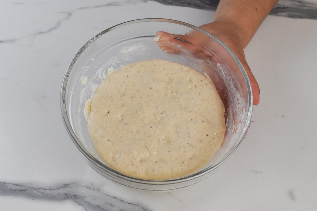 Recuperamos el lievitino listo, bien fermentado, a este añadimos la mantequilla derretida, el azúcar y la harina y amasamos, obteniendo un bonito bollo liso. Trabajamos bien, también haciendo pausas, para obtener un bonito bollo elástico. Si prefieres puedes trabajar con amasadora, pero es realmente sencillo también a mano. Hacemos el boleado en la masa, en el sentido de que redondeamos bien para formar un bonito bollo liso y cubrimos y dejamos fermentar, hasta duplicar, también aquí los tiempos varían según la temperatura. Te recomiendo dejar fermentar al menos 6-12 horas, en un rincón protegido, porque los fermentados siempre deben estar lejos de corrientes de aire. Ponemos en la nevera una hora antes de proceder con la segunda masa.