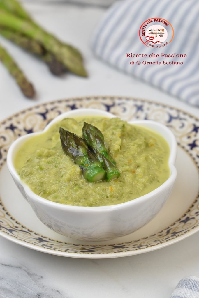 Cómo preparar una deliciosa crema de espárragos, ideal para untar en una rebanada de pan, para preparar risottos, pasta cremosa con espárragos, y también crepes rellenas, lasañas y mucho más, excelente de hecho para acompañar platos principales de carne o pescado. Pensé en preparar esta deliciosa crema de espárragos cuando preparé el risotto con espárragos, quería hacerlo más cremoso, y por eso pensé en preparar una crema de espárragos para enriquecerlo y hacerlo aún más delicioso y apetecible que una buena cremita de espárragos. Para preparar la crema de espárragos además de usar las partes más tiernas del espárrago también usé los restos, cocinándolos aparte para preparar un buen caldo vegetal sazonado con espárragos, que es buenísimo para risottos y sopas. Entonces veamos cómo prepararla, y os dejo a continuación los enlaces a muchas otras deliciosas cremitas para preparar fácilmente en casa.