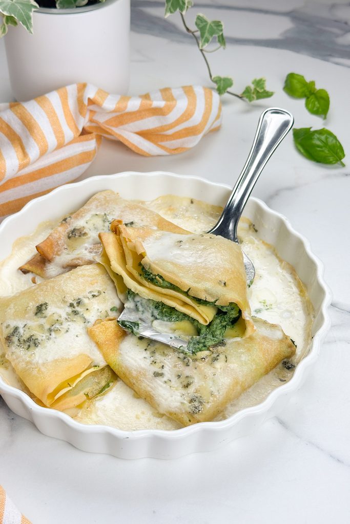 Crepes de ricotta y espinacas gratinadas con gorgonzola