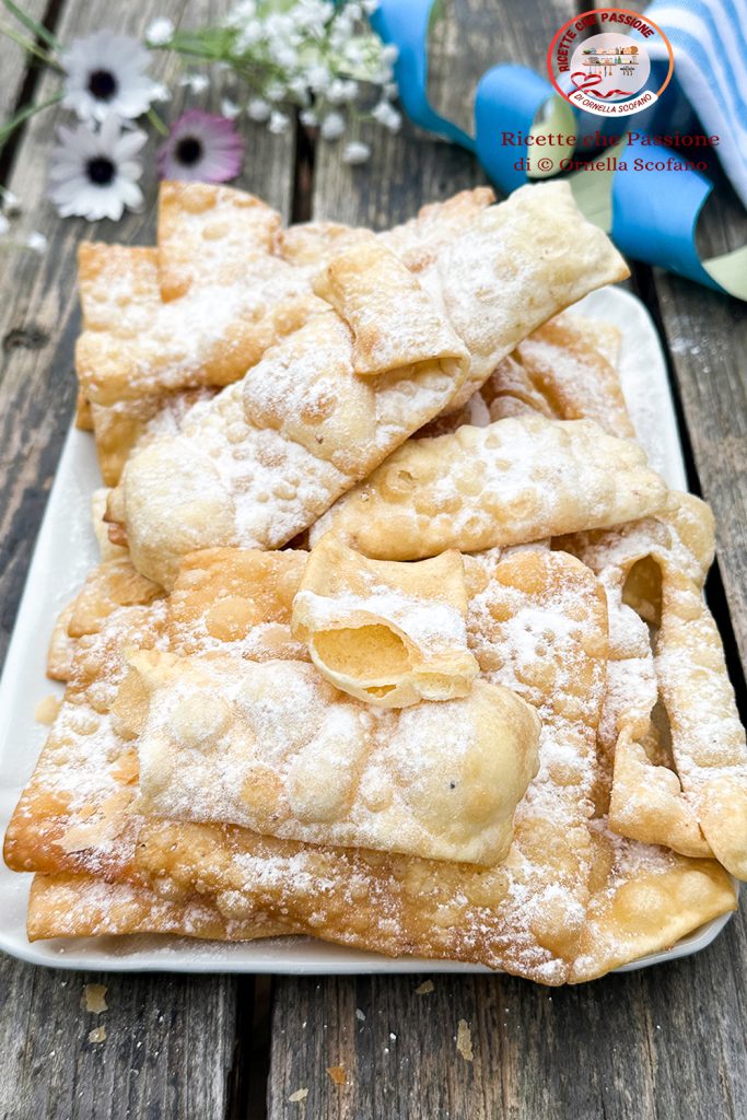 Frappe de carnaval perfumadas al anís con aceite de oliva, sin mantequilla. Cómo hacerlas crujientes y con burbujas fáciles de hacer en casa, se empieza con una masa sencilla perfumada con vainilla, cáscara de limón y licor de anís, pero si se prefiere se puede usar otro licor, también va bien la grappa, pero con el anís el aroma se siente más. Las frappe, cenci, chiacchiere, bugie, lattughe, o con cualquier otro nombre que sean conocidas, son los dulces más populares del carnaval. Para carnaval los dulces fritos son los más consumidos, las chiacchiere junto con las fritelle son los dulces más consumidos y hacerlas en casa es realmente sencillísimo, y con lo que cuesta comprarlas, incluso hasta 100,00 € por kg, ¡una locura! yo con menos de 5 euros preparo un montón y si no tengo anís en casa uso otro licor, claro que no voy a comprarlo a propósito.