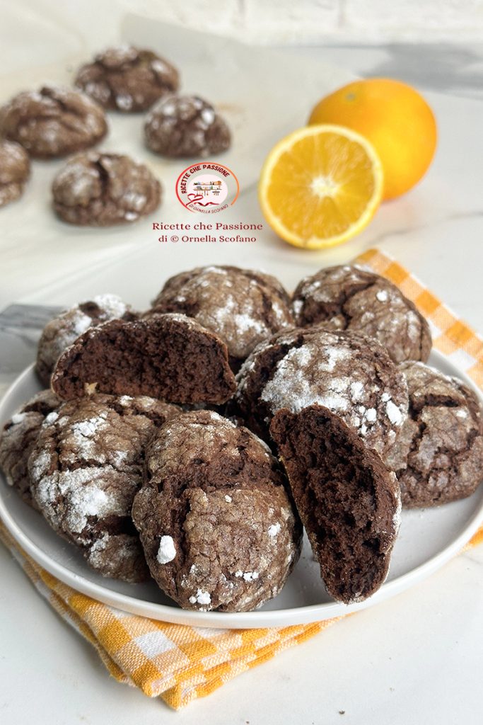 Qué ricas son las galletas caseras, esta vez las he preparado blandas de chocolate con jugo de naranja, sin huevo y sin leche, he usado mantequilla que se puede sustituir fácilmente con aceite de semillas o de oliva, os aseguro que incluso en este caso salen unos dulces increíbles, yo uso mucho el aceite de oliva, para los levados, para las masas quebradas y también para las galletas. Así que podemos preparar galletas veganas y adecuadas también para quienes son intolerantes a la lactosa sin dificultad. Quienes tengan problemas con el gluten pueden sustituir la harina 00 con una mezcla de harina de arroz, fécula de patata y almidón de maíz, para disfrutar así de galletas veganas y sin gluten sin ningún problema, muy sabrosas, con chocolate y naranja. Ahora que llegan las fiestas, estas galletas serán perfectas para enriquecer la mesa festiva, pero también son una excelente idea para regalar, las podemos poner en bolsitas y estoy segura de que serán muy apreciadas.