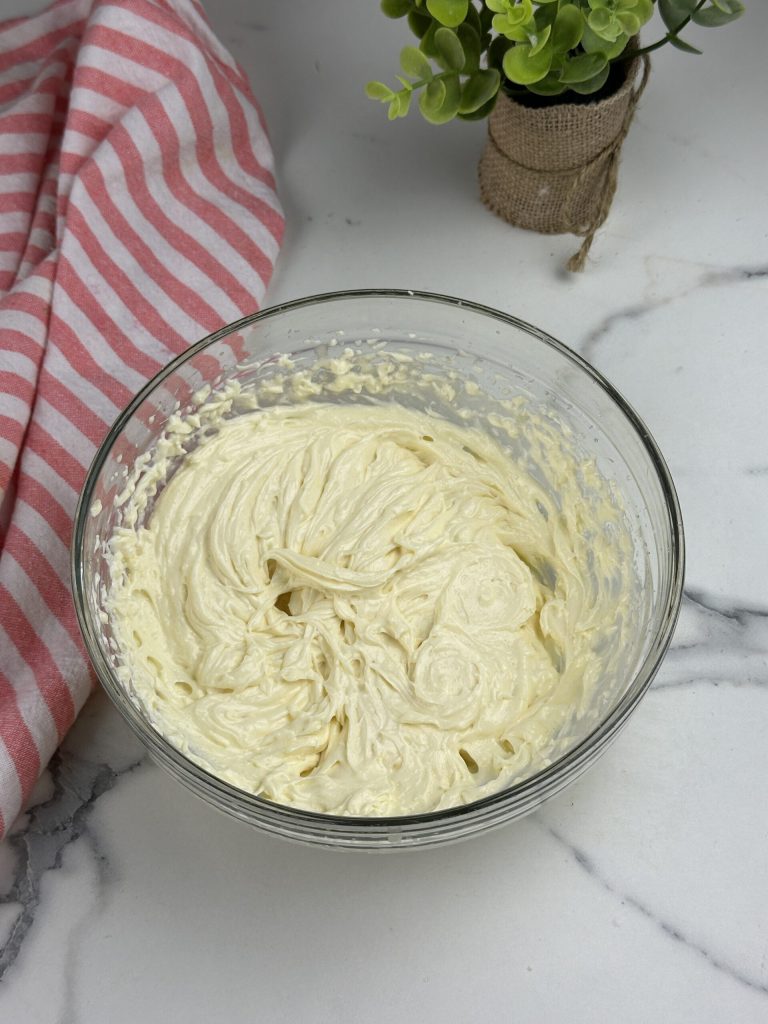 Incorporamos las claras poco a poco a la crema de mascarpone con una espátula, con movimientos de abajo hacia arriba.