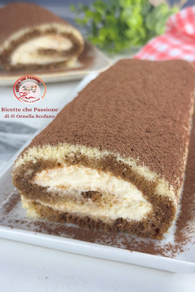 Rollo de tiramisú fácil, rápido y buenísimo con bizcocho perfecto que no se rompe, sin grasas y sin levadura, perfecto para transformar en Navidad en un delicioso tronco. Me encanta el bizcocho, muy similar al pan de España, cambio muy poco para hacerlo más elástico, disminuyo la cantidad de azúcar y harina y añado un ingrediente que hace el bizcocho más resistente pero dejándolo al mismo tiempo suave y esponjoso. Para el rollo de tiramisú he usado un almíbar de café, un buen café de cafetera diluido con un poco de leche, de lo contrario luego no puedo dormir, ya que no estoy acostumbrada a tomar más de un café al día. Para la crema la clásica crema de mascarpone, no suelo pasteurizar los huevos, nunca me han dado problemas los huevos crudos, pero prefiero usar los controlados del supermercado, no los del gallinero, que utilizo solo cocidos, porque allí no hay ningún control y por eso podrían estar contaminados. Obviamente sé que querrás poder pasteurizar los huevos, para tener la seguridad de huevos no crudos. Para pasteurizar los huevos con seguridad puedes seguir la cocción al baño maría mientras los bates con el azúcar, este es el único método realmente seguro, te dejo aquí el enlace cómo pasteurizar los huevos de manera segura. Una vez pasteurizados los huevos, trabajando directamente huevos y azúcar, deberás añadir el mascarpone.