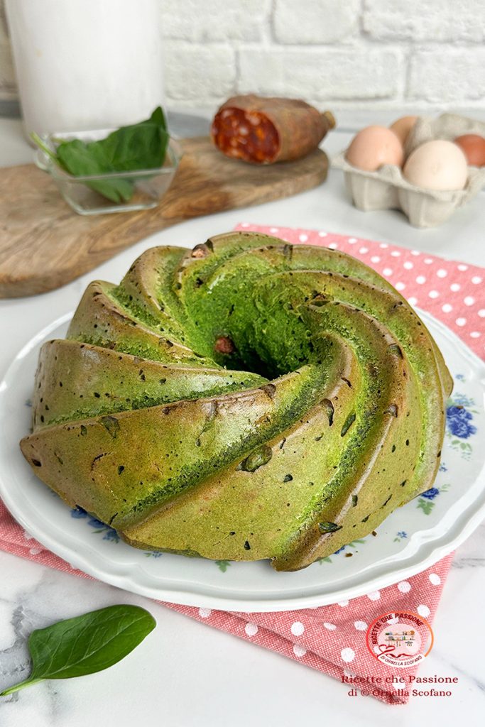 Para Pascua, una deliciosa rosca salada, perfecta para llevar a la mesa junto al aperitivo, o para el Lunes de Pascua, para el picnic al aire libre. Yo, la verdad, la preparé para servirla mientras esperábamos disfrutar de una rica barbacoa mixta en el jardín. Entre el aroma de las flores de primavera en un hermoso día soleado, decidimos organizar un BBQ en familia, así que se me ocurrió la idea de servir la rosca salada de Pascua, con requesón y espinacas, rellena con huevos cocidos y enriquecida con salami, pensando precisamente en poder repetirla en Pascua o Lunes de Pascua. El sabor es delicioso, tanto que todos repetimos, es realmente irresistible. Lo mejor es que no es una tarta seca, sino húmeda, que se disfruta realmente con placer, sin dejarte con la boca seca. Además, es facilísima de preparar, piensa, lo más largo es escaldar un momento en agua hirviendo las espinacas, sí, ya sé que os he dicho muchas veces que no se hace, pero en este caso está bien, porque las espinacas van trituradas. Vamos a ver cómo prepararla.