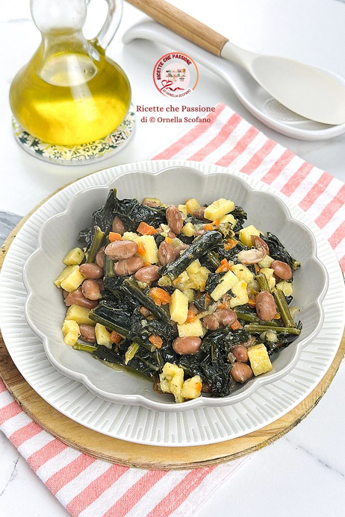 Una sabrosa sopa de col rizada con polenta y frijoles borlotti. Un plato único rico y completo, genuino y vegano, perfecto para una comida completa, ideal para el almuerzo por su alto porcentaje de carbohidratos. Me encantan las sopas de verduras y en invierno las preparo a menudo, desde que descubrí lo buena que es la col rizada, cada vez que la encuentro la llevo a casa. Esta vez hice una sopa deliciosa, tenía polenta sobrante y pensé en hacer un plato muy bueno. Si no tienes polenta sobrante, se puede preparar rápidamente una polenta precocinada. En 5 minutos ya estará lista.