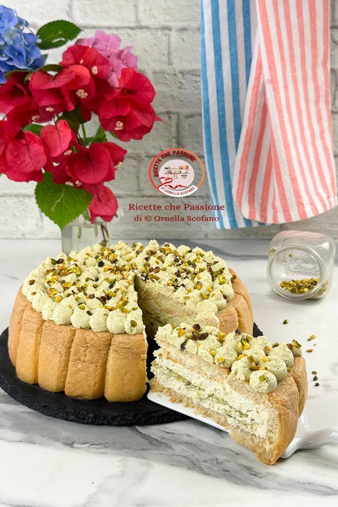 ¿Te apetece un buen postre fresco y delicioso? Prepara conmigo la tarta fría de pistacho con yogur griego, realmente fácil, sin cocción, fresca y golosísima. Te lo digo yo, que adoro los postres de pistacho: es fabulosa, y con el yogur fresca y ligera, perfecta para disfrutar en los calurosos días de verano. La tarta fría de pistacho se prepara con bizcochos de soletilla, básicamente es una especie de tarta tiramisú de pistacho, solo que en lugar de café para mojar los bizcochos he usado un almíbar fresco y aromático de amaretto, que le da al postre un buen aroma de almendra, y para el relleno no uso una crema de mascarpone que en verano puede resultar un poco pesada, sino una crema ligera a base de yogur griego, que combina perfectamente con los demás ingredientes, aportando mayor frescura al dulce. Veamos cómo realizarla rápidamente, sin cocción, perfecta para nosotros que sufrimos el calor pero somos golosos incluso en verano.