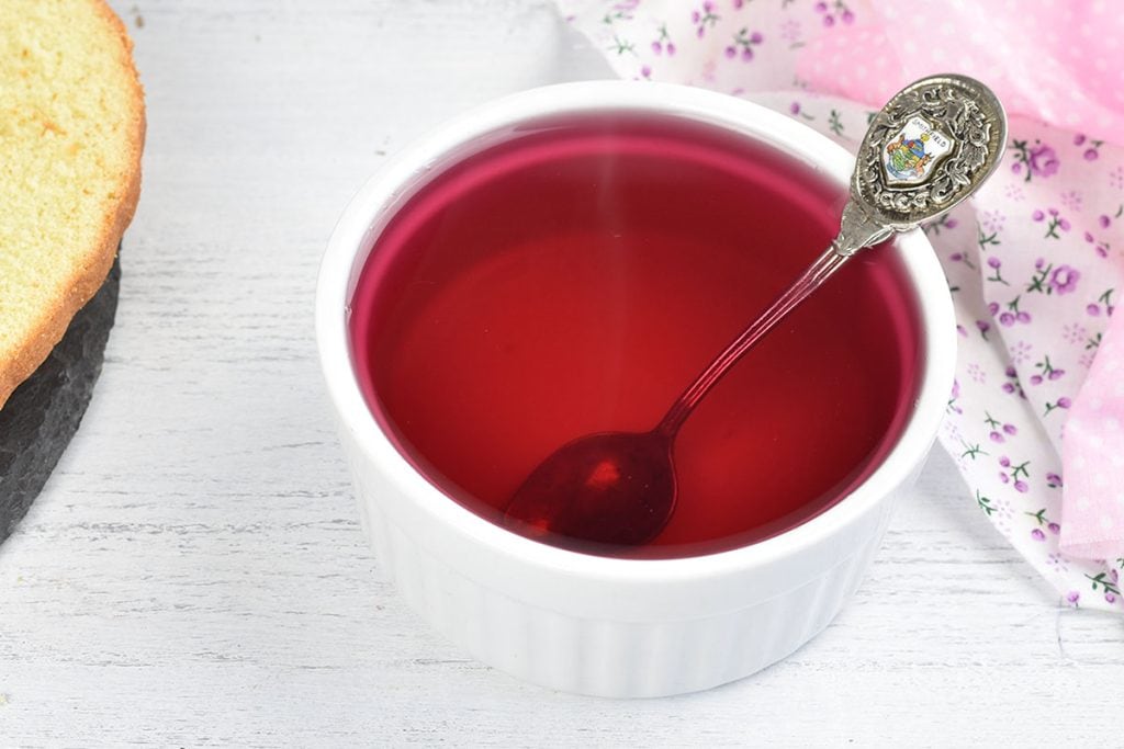 Con una cuchara distribuimos el remojo de alchermes por toda la superficie de la tarta, incluyendo los bordes, abundante, así quedará bien perfumada.