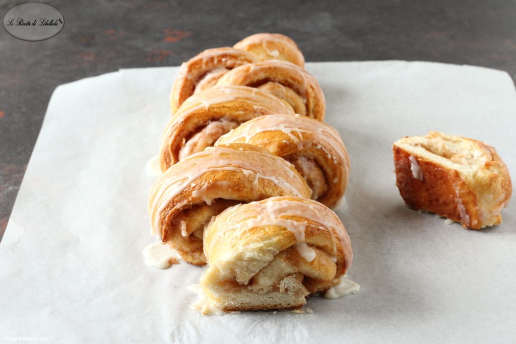 El pan dulce de canela en rollo (cinnamon roll pull apart bread) es la unión perfecta de dos dulces muy populares en América: los cinnamon rolls y el pull apart bread. La receta que propongo a continuación es para hacer en casa el pull apart bread: un pan dulce que no necesita cuchillo porque las rebanadas ya están separadas entre sí y se realiza en forma rectangular, para luego ser colocado en un molde de plumcake. En este caso, sin embargo, el pull apart bread se realiza en un rollo y luego se corta en espirales, y tras la cocción se glasea con azúcar, leche y vainilla: por eso recuerda a los famosos cinnamon rolls. Una vez desmoldado, este dulce perfumará toda la cocina con el embriagador aroma a canela. Perfecto para el desayuno y merienda, el pan dulce de canela en rollo alegrará el día!
