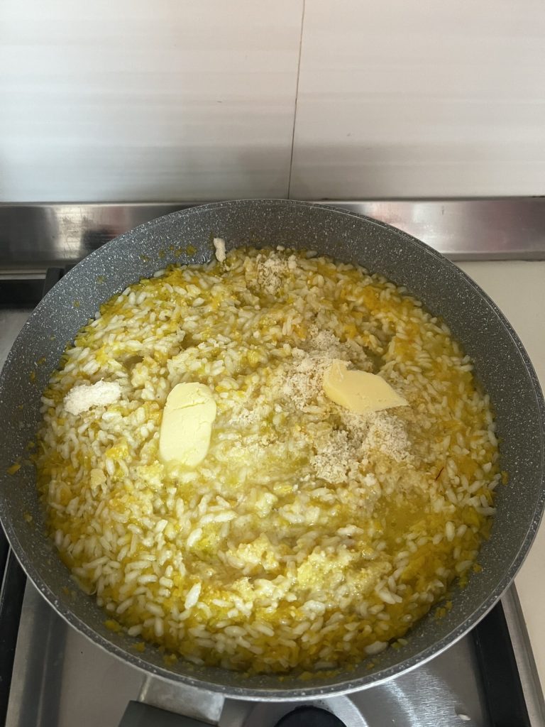 Recomiendo preparar el risotto de calabaza y azafrán al momento, ya que con el tiempo tiende a secarse.