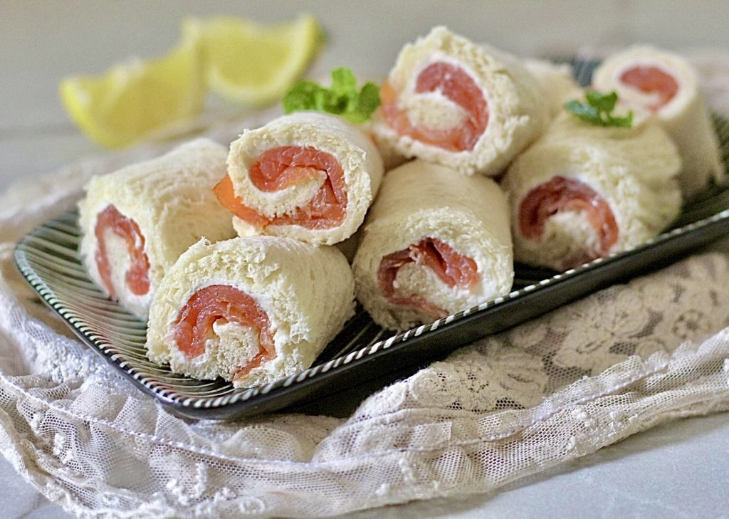 Solo necesitas pocos ingredientes: rebanadas de pan de molde ligeramente aplastadas, una generosa capa de queso cremoso, y una loncha de salmón ahumado enrollada con cuidado. En pocos minutos, sin cocción, se obtienen pequeños bocados cremosos y sabrosos, listos para cortar en rodajas y servir.